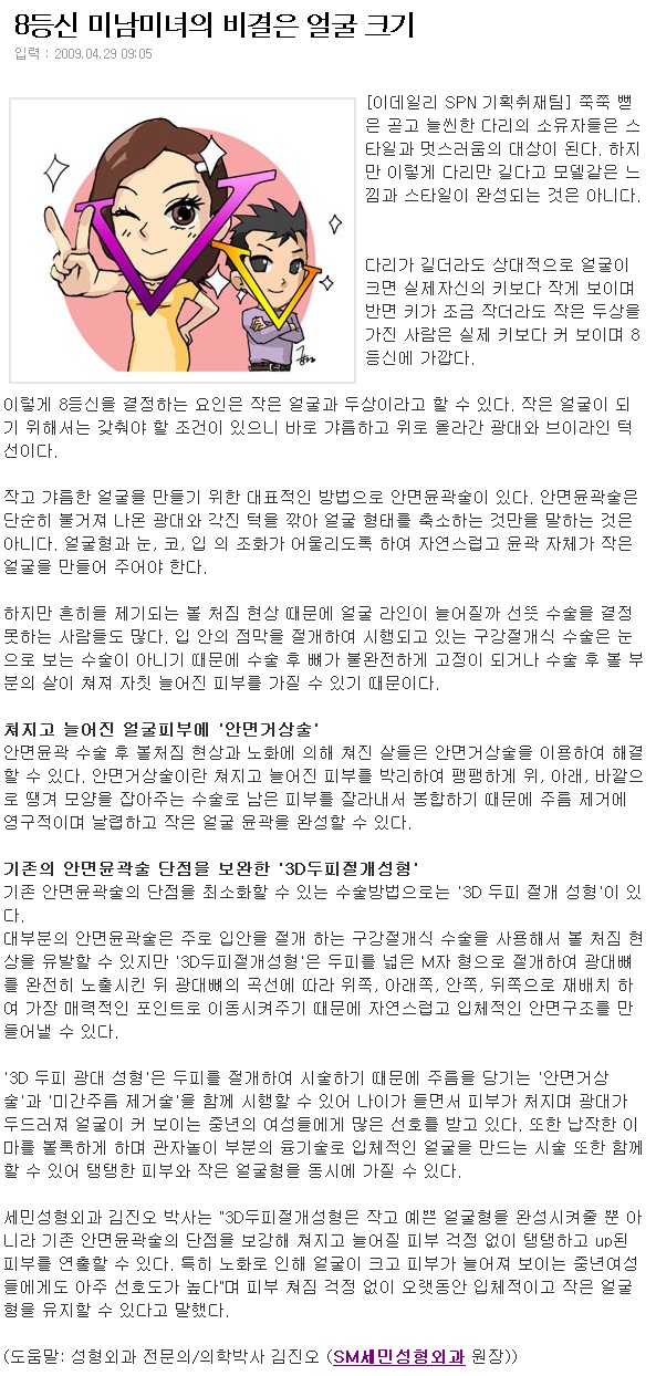 8등신 미남미녀의 비결은 얼굴 크기