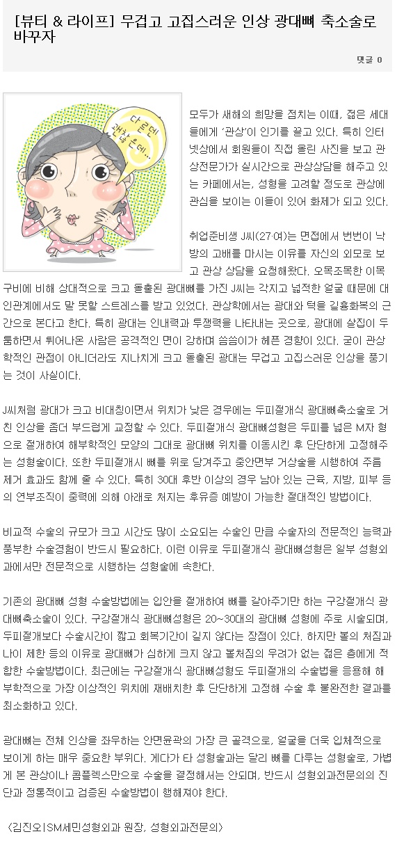 [뷰티 & 라이프] 무겁고 고집스러운 인상 광대뼈 축소술로 바꾸자