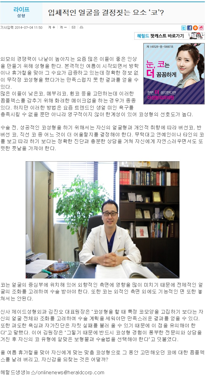 입체적인 얼굴을 결정짓는 요소 ‘코’?