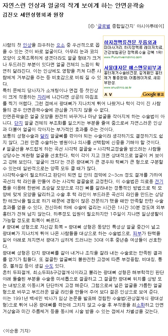 자연스런 인상과 얼굴의 작게 보이게 하는 안면윤곽술