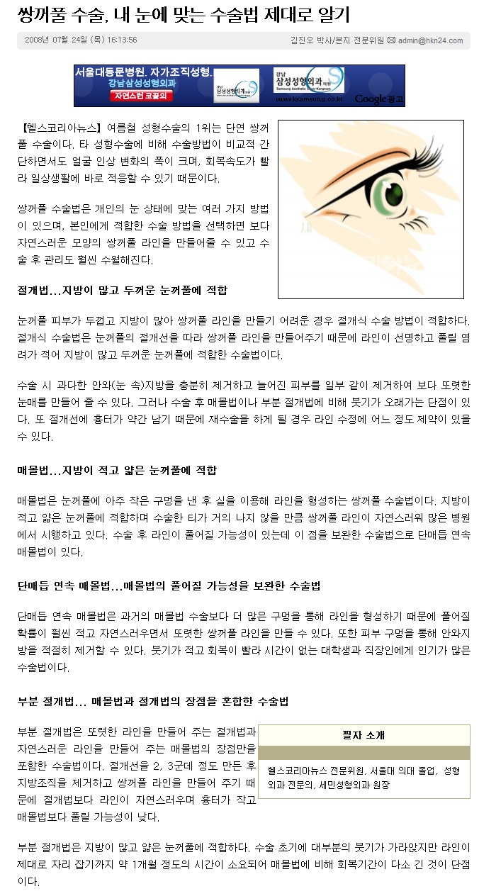 쌍꺼풀 수술, 내 눈에 맞는 수술법 제대로 알기
