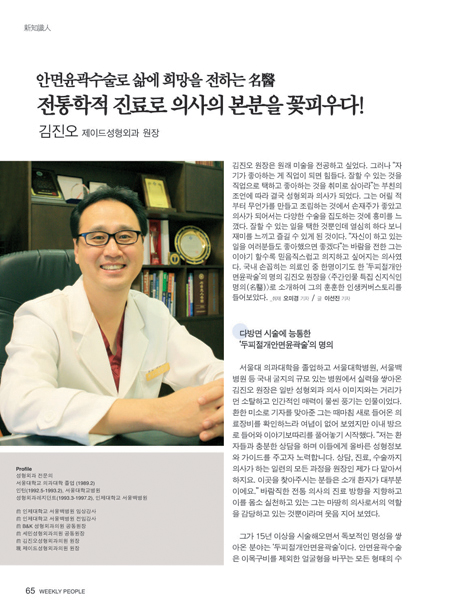제이드성형외과 김진오원장님께서 주간지 [주간인물]에 표지인물 및 주간인물이 선정한 의료분야 신지식인으로 선정되었습니다.